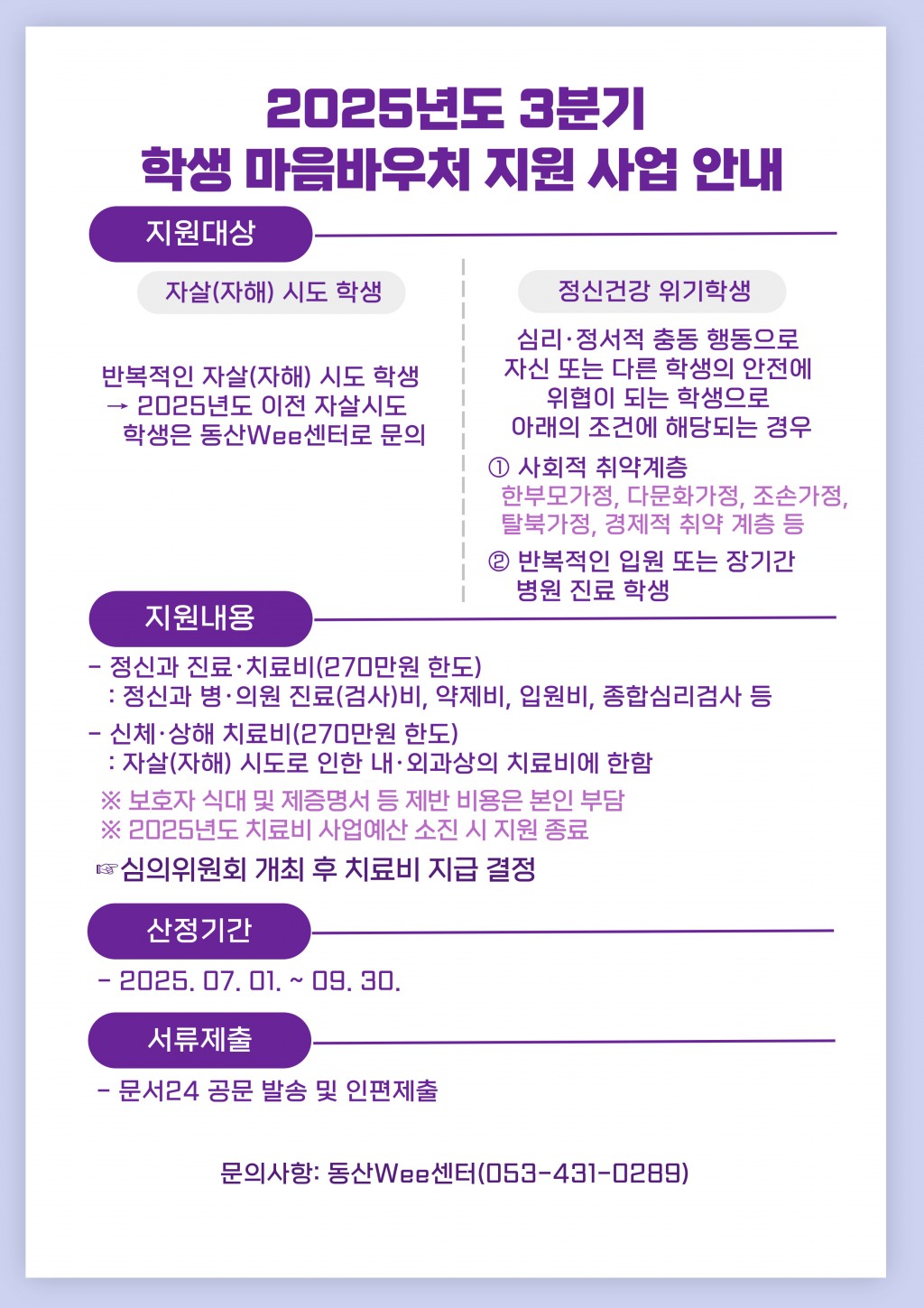 2025년도 3분기 학생 마음바우처 지원 사업 안내