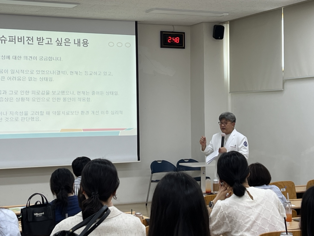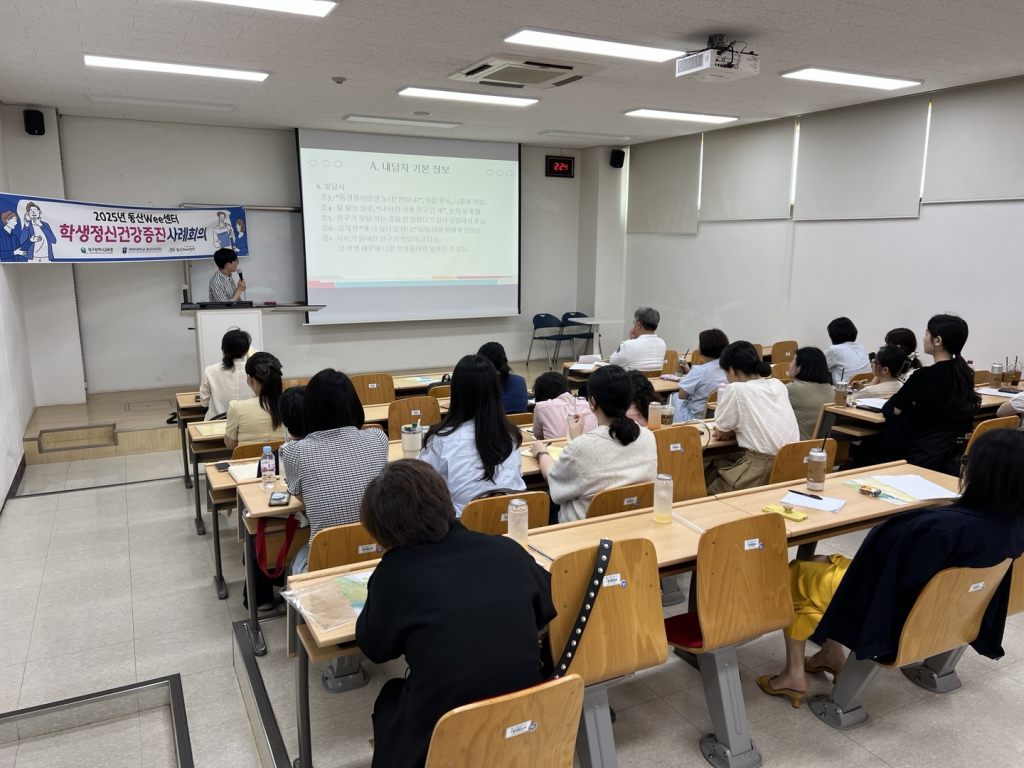 2025년 제2차 학생정신건강증진사례회의를 개최하였습니다! 1차에 이어 2차 사례회의에서도 학생들에 대한 열정으로 상담선생님들 뿐만 아니라 학생부장선생님까지 참여하여 다양한 사례로 이야기를 나눌 수 있는 뜻깊은 시간이었습니다^^ 참석해주신 선생님들과 좋은 정보를 많이 나눠주신 동산병원 정신건강의학과 정성원교수님께 다시 한 번 감사의 인사를 드립니다! 대구광역시 학생·학부모님이 행복할 수 있도록 고생해주시는 우리 선생님들♥