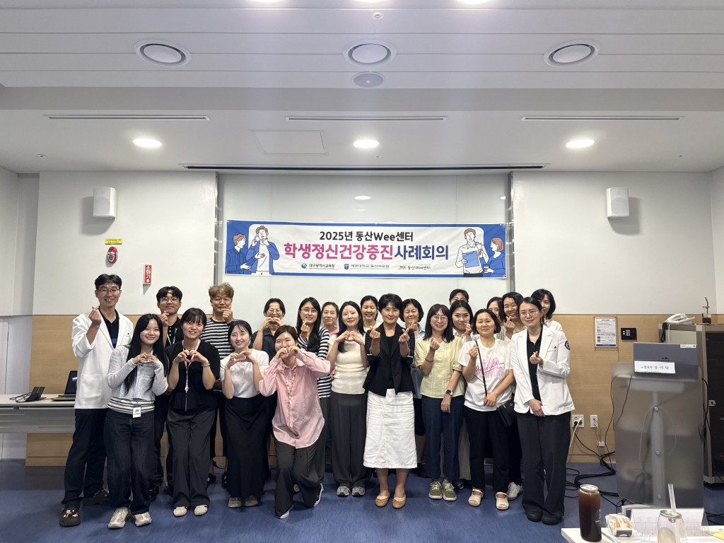 안녕하세요? 동산 Wee센터입니다! 동산 Wee센터에서는 상담사례를 공유하고 함께 논의하는 시간을 통해 지역 내 상담 인력의 역량 강화를 돕고자 학생정신건강증진사례회의를 매년 진행하고 있습니다! 2025년 9월 4일 목요일에 제3차 학생정신건강증사례회의가 개최되었습니다! • 일시 : 2025년 9월 4일 14:00 ~ • 장소 : 계명대학교 동산병원(성서) • 발표자 : 송이탁(동산 Wee센터 팀원) • 슈퍼바이저 : 이호준 계명대학교 동산병원 정신건강의학과 교수(동산 Wee센터 센터장) 및 공나영 계명대학교 동산병원 정신건강의학과 교수 이번 사례회의에서는 품행 및 비행하는 학생에 대해 발표하였고 청소년의 품행 및 비행에 관한 상담에 대한 피드백에 대해 이호준 교수님과 공나영 교수님께서 섬세한 피드백을 해주셨습니다. 참석해 주신 선생님들께서 각 학교 장면에서 보이는 유사한 사례를 공유해 주셔서 너무나도 뜻깊고 소중한 시간이었습니다! 상담자로서 한 단계 성장할 수 있도록 도움을 주신 교수님들과 참석해 주신 모든 선생님들께 감사드립니다! |