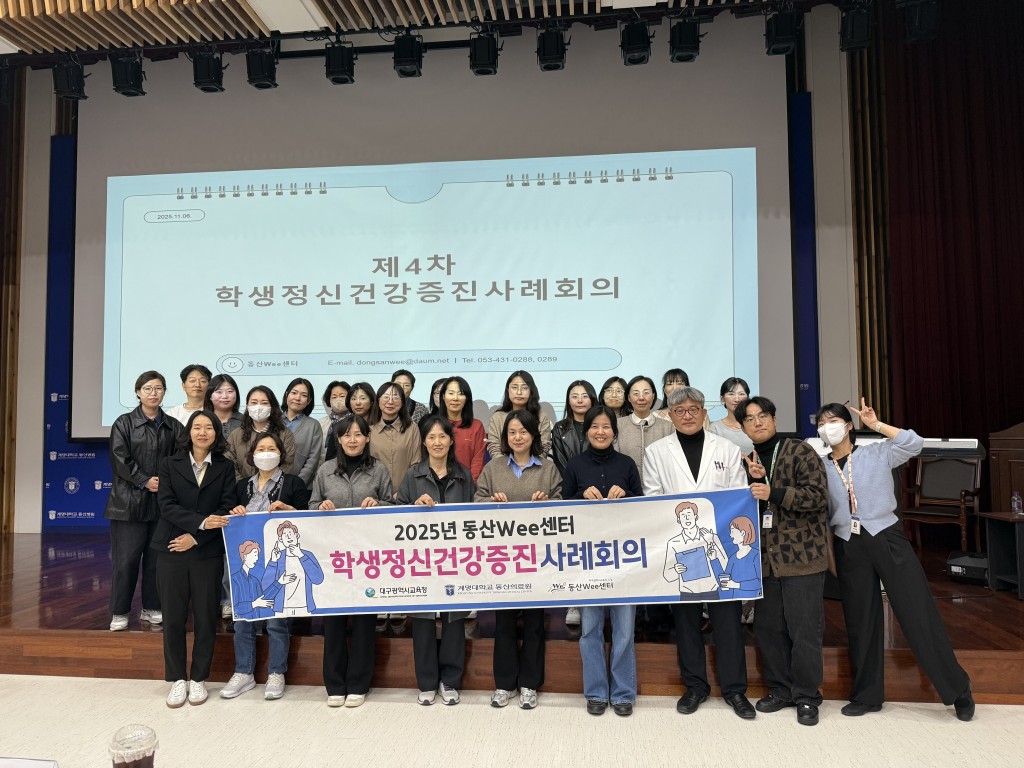 안녕하세요? 동산 Wee센터입니다! 동산 Wee센터에서는 상담사례를 공유하고 함께 논의하는 시간을 통해 지역 내 상담 인력의 역량 강화를 돕고자 학생정신건강증진사례회의를 매년 진행하고 있습니다! 2025년 11월 6일 목요일에 제4차 학생정신건강증사례회의가 개최되었습니다! • 일시 : 2025년 11월 6일 14:00 ~ • 장소 : 계명대학교 동산병원(성서) • 발표자 : 동산 Wee센터 팀원 • 슈퍼바이저 : 정성원 계명대학교 동산병원 정신건강의학과 전문의 교수