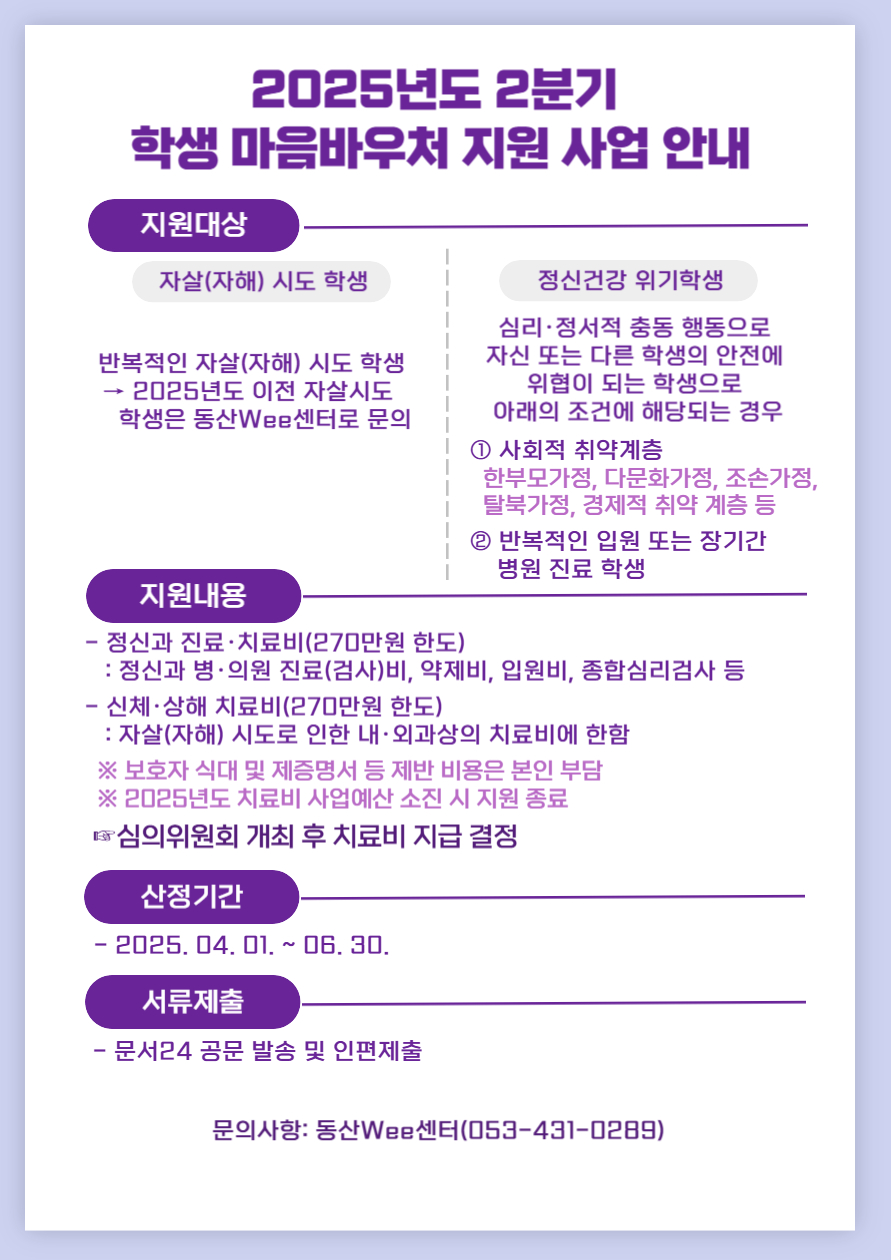 2025년도 2분기 학생 마음바우처 지원 사업 안내